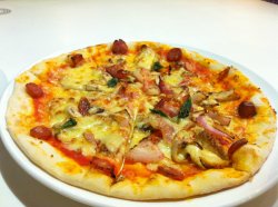 虹口足球场附近的这个龙之梦很少去,想了半天还是想吃pizza,看见这家店里有就冲进去了。里面有好多的孩子,我家宝宝可开心了,站在他们的沙发似的的椅子上,和那些小朋友打招呼,服务员也超级热情哦,还问我们要不要加盘子给小朋友用呢。我们点了三个pizza,三杯饮料,等了稍微时间有点长,不过pizza都是现烤的,可以理解嘛。我们点的是照烧鸡肉pizza,上面有一些蛋,就给宝宝吃了一点,她很喜欢的,pizza上来的时候,服务员帮我们一片片的切割开来,超级认真哦,薄薄的pizza饼上面虽然没有芝士,但是总体来说还是很香脆的,我很喜欢吃,爸妈也可以接受。看见那里还写着可以免费玩桌游,不过时间正好不是我们吃饭的时候,只能算了,呵呵,有吃有玩,真是个好地方啊,查看更多