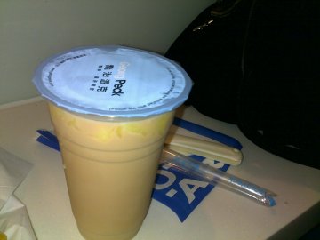 这家的奶茶第一次喝,味道挺好的,奶味挺浓的,只是味道比较普通,说不出什么特别来。要的是布丁奶茶,布丁味道很甜,蛮滑的,很嫩,冰冰凉凉的。奶茶的味道很香,奶味比较重,基本喝不出茶香,口感滑而不腻,也不是很甜,入口挺细腻的