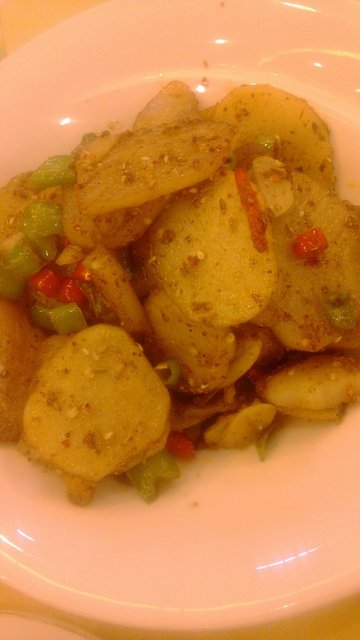 九头鸟酒家的珍珠丸子确实很好吃,外面的糯米裹的很实的,吃起来爽脆的很了,里面是有点不知道是马蹄粒还萝卜粒的说了,肉馅是够爽脆的了。热干面我也是经常吃的,这个的面条是挺细滑的,不过确实很干,基本上水分就等于油分来的了。