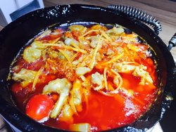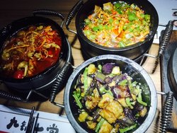 很早之前在E购吃过他家,一直就没有吃过他家了,小伙伴说味道有所提升,现在很多菜品都多好吃的,好吧,我们也是蛮拼的,中午约好一起吃午饭,因为小伙伴下班比我下的早,已经到店里,点好菜了,我去的时候门口已经人山人海了,生意好到不行,【石锅鸡杂】 25米,小伙伴太了解我了,晓得我喜欢吃鸡杂,给我点了一份,还多好吃的,份量十足,完全没有腥味,还多好吃哒,下饭特别爽。【石锅美蛙】39米,份量到是很多,味道确实一般,都没怎么吃完。【茄角之恋】 12米,茄子与豇豆的结合,超喜欢,豇豆也好好吃哦。【石锅土豆片】19米,听小伙伴说这个是抢手货,很多人都点了的,味道还是不错的,不知不觉吃了好几大片。【酱油饭】 自助,超抢手,还不错,只打了2碗。两人人也是蛮吃的的,就是点的有点多了,都没吃完。囧。…查看更多