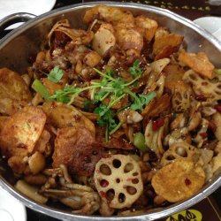 这家的干锅牛蛙中加入了不少的中药材,有趣的是完全不会有那种浓烈的中药味道而影响了牛蛙本身的现象,反而成为一道很滋补的菜品。牛蛙量很多,个头很大,肉质很扎实,配菜也不错,藕片超级酥的,不咸不淡可以接连不断的吃呐。查看更多