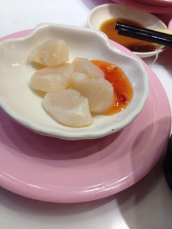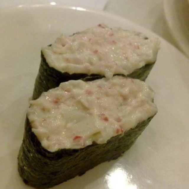第一次在晚饭的时候吃这个,果然后厨出菜的效率比下午的时候高。连刺身都有,不用喊服务员点餐了。继续点了上次吃的黄色的鱼籽的那个,不知道是啥,反正对鱼籽都比较感兴趣。还点了蟹子寿司。三文鱼,金枪鱼,这次尝试了扇贝,放了甜辣酱,味道还不错。清口吃,确实能吃到食材本身的鲜美味道。