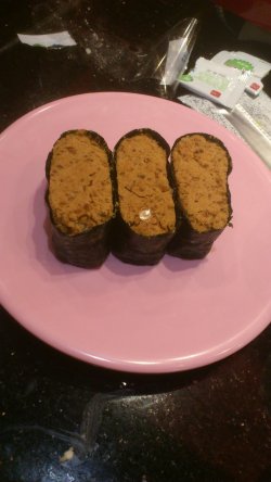 这家寿司味道一般,性价比还不错,这种回转的方式挺好的,喜欢什么自己拿,有半自助的感觉。6元一盘,基本上都是两个,想吃好东西要另点。他们家的肉松寿司我很喜欢,上面的肉松特别松,吃起来很香,而且脆脆的,咸甜适中,很鲜。肉松下面的米饭包得紧实,外面的海苔脆脆的,口感很香,蘸上酱油和wasabi,口感立马提升了,有种刺激的感觉,配合松软可口的肉松,简直是种享受查看更多