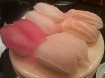争鲜回转寿司这家算是比较平价的寿司店,经常会和好友光顾这家.比较喜欢它家的北及贝,北及贝的个头很大,每个都非常肥厚,入口脆脆的,沾上店家自己调制的芥末酱油后味道更美味无比,非常好吃.