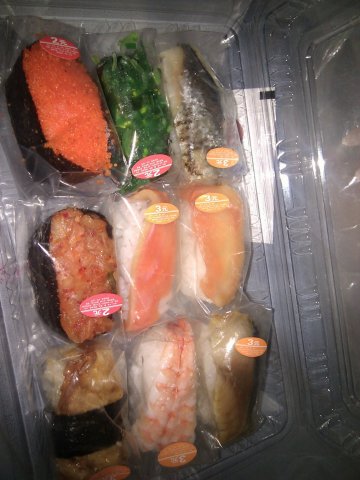 其实吃的挺撑的 但是有点小馋 外加怕等下看电影的时侯会饿 所以就随便挑了几个(1)三文鱼寿司---很清淡(2)辣章鱼寿司---有点小腥(3)剑鱼松寿司---鱼松脆脆的 还不错(4)还有两个忘了名的寿司---不咋地。。。总的来说 偶觉得不怎么好吃 有可能因为是偶吃饱了的关系 还么妈妈包的寿司诱人呢。。结账的时侯看到收银台旁边放着纸巾就顺便问服务员要了 他冷冷地和我说 外带的是么有纸巾的 奇怪类 你有堂吃吗?名字不就叫外带寿司吗?(我也不是一定要你的纸巾 只是觉得方便省得我再去包里找而已) 这样的态度实在是不敢恭维。。。…查看更多