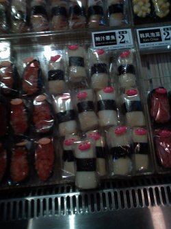其实吃的挺撑的 但是有点小馋 外加怕等下看电影的时侯会饿 所以就随便挑了几个(1)三文鱼寿司---很清淡(2)辣章鱼寿司---有点小腥(3)剑鱼松寿司---鱼松脆脆的 还不错(4)还有两个忘了名的寿司---不咋地。。。总的来说 偶觉得不怎么好吃 有可能因为是偶吃饱了的关系 还么妈妈包的寿司诱人呢。。结账的时侯看到收银台旁边放着纸巾就顺便问服务员要了 他冷冷地和我说 外带的是么有纸巾的 奇怪类 你有堂吃吗?名字不就叫外带寿司吗?(我也不是一定要你的纸巾 只是觉得方便省得我再去包里找而已) 这样的态度实在是不敢恭维。。。查看更多