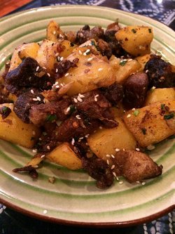2014年09月06日(周六)拖着一起去云南的闺蜜在上海重温云南菜最近去的第二家云南餐馆 和花马天堂完全不同的风格这家更为家常 价格更为实惠 菜单更为丰富【彝族洋芋烤牛肉:48元】他们家的洋芋牛肉有两种 推荐的是烤牛肉这个牛肉真心是香啊 能明显的吃出牛肉味 咬起来也很嚼劲土豆烤过之后 最外层是一点点的脆 里层也很香糯一份的量 牛肉还是很足够的 性价比蛮高的【老奶洋芋:22元】太敦实的一份洋芋了 打成了泥装一点点的葱花 洋葱颗粒 口感比土豆泥更颗粒一些只是油放的有点多 只感觉太过油腻 没有吃出其他的味道的确还是蛮适合老奶吃的 建议人多的时候在点 一人一勺【大救驾:26元】他们家的大救驾要比花马天堂的逊色好多啊鸡蛋 白菜梗 一点点的泡菜和饵块的结合饵块的量还是可以的 只是这样的一个组合口感有点素蔬菜本身没有将饵块的特色体现出来 和炒年糕差不多大救驾的英文居然是RICE CAKE【杂酱米线:20元】点完迅速上桌 第一印象是和辣肉面好像啊 肉末更碎一点汤头很好喝 米线口感也不错 一点点的辣味 就是有点小油工作日的中午他们家还提供特价的米线套餐●口味:属于比较家常的云南菜 菜单超级丰富 很多菜都想点 适合聚餐一个个吃过来●环境:包房的名字都以云南地名来定 一点点的云南装饰 泸沽湖的大照片●服务:他们家的服务员年纪都好小啊 统一的云南式服装 服务员人数也很多 上菜居快●人均:菜品价格都挺实惠的查看更多