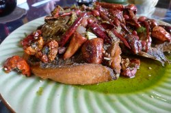 猜得到这家云之缘是干什么的?告诉你啦,其实是家专做云南菜的饭店。定西路武夷路那里有好多弄堂房子,这家饭店开在那里也算有点儿情调。说到云南菜,大家都会想到乳扇、过桥米线、菌菇什么的,不过他家最最有名的招牌菜居然是烤鱼,没想到吧。云之缘做的烤鱼跟外面很多饭店做的烤鱼都不一样,不是放在平锅子里放汤煮,而是真正的烤出来的鱼肉,外面一层脆脆的、硬硬的、鱼肉都收干了,所以吃起来特别香,味道有点小辣。…查看更多