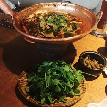 和朋友们小聚,约在新天地,这家算是新天地里很评价的啦,哈哈。长假的晚饭,排了一会小队,等待时间还能接受啦。他们有几道招牌菜是有会员价的,落座后,问他们怎么成为会员,原来只要关注他们微信号,就可以了,赞!菌临天下,就是包烧牛肝菌,原价88元,会员价78元,貌似牛肝菌没多少,里面好多大葱啊、蒜啊什么的配料,牛肝菌是很鲜香啦。送了豆花,两个口味,生层焦糖味,下层加了玫瑰花,豆花好细嫩,我更喜欢带玫瑰香味的。鸡丝凉米线,原价42元,会员价36元,迷献上铺了鸡丝、萝卜丝、黄瓜丝等,颜色搭配挺不错,米线很Q滑,酱汁是酸酸的味道,蛮开胃的。傣味香茅烤罗非鱼,原价62,会员价52,端上来的时候,上面还罩着个铜锣似的玩意,噱头挺浓,一揭开,卖相还是很不错的,鱼肉也蛮嫩的,但是我觉得有点腥啊。五彩四棱豆,就是龙豆啦,里面还有不少红豆、彩椒什么的,五颜六色的,龙豆还保持了脆脆的口感,喜欢。野生酸角树莓汁,一瓶20元,第二瓶10元,如果第三瓶的话,还是20元,第四瓶才有半价,所以我们三个人点了两瓶分分,酸酸甜甜,蛮好喝的。服务员态度很好,反正也蛮快的。结账的时候,我看到有团购券,他还特地帮我算了一下,是用团购券划算,还是享受会员价划算,会为客人着想啊!…查看更多
