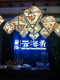 新天地新开的云海肴云南餐厅,新店开张一周内5折优惠,价格很实惠,人气也颇高,当然要去先尝为快啦!刚从云南旅行回来,在上海又能吃到正宗的云南菜真是很惊喜呢,改良了云南系重咸重辣,更符合我们本帮口味,觉得东西都很好吃啊,大部分食材是从云南新鲜空运过来的,保证质量,吃得地道又放心。饮料点了芒果优格,芒果味道超级浓郁,还有新鲜芒果颗粒,非常好喝,朋友点的三宝汁是核桃花生牛奶的组合也很有特色。薄荷牛肉卷:薄荷很清口,和牛肉的搭配非常不错,蘸点酱油一口吃下去非常喜欢老奶洋芋:就是土豆泥,造型很可爱,价格很实惠,几乎每桌必点的,喜欢葱香味的,很香很好吃老昆明大酥牛肉:牛肉超级酥烂入味,里面的土豆也很好吃呢鸡丝凉米线:酸酸甜甜的非常开胃爽口,这个口味应该很受上海人喜欢的香煎石屏豆腐:在云南吃了好几次包浆豆腐,我觉得这个可以改良一下放进菜谱诶油焖小麦瓜:据说这个小麦瓜也是空运过来的,里面用火腿丁一起炒的,很清爽的一道菜香茅草烤罗非鱼:罗非鱼上桌卖相就很好看,外脆里内,鱼肉特别的鲜嫩多汁,很好吃啊养生汽锅鸡:完全的原汁原味,很清甜滋补的鸡汤,喝了好几碗呢君临天下:荷叶包着的菌菇菜,一打开就香味四溢,入味好吃野果酸汤鱼:这个鱼肉好肥美啊,乍一看还以为是大块大块的肉呢,慢火烧一会,鱼肉吸收了汤汁吃起来更好吃了,喝了一口汤,酸劲十足很特别的味道啊,果然是热带版纳风味黑三剁:很下饭啊,可惜上来晚了吃不下了,要碗白饭配着吃很好吃,也可以和米线一起吃,特下饭菠萝饭:觉得云海肴的菠萝饭超级好吃,大颗菠萝果粒和糯米饭混合在一起,菠萝味道很浓郁,回味无穷啊椰子冰沙:绵密的冰沙,清甜的椰子味,饭后来一杯太喜欢了鲜花饼:点了一个尝尝,温温热热的鲜花饼还是很地道的,和在云南吃的一样好吃…查看更多