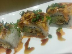 司门口这家分店是新开的,一直对它家的印象非常好,因为服务态度蛮好这家新店店面不大,装修还可以,路过突然想吃甜品就进来尝尝,对它家的美式寿司还是蛮有好感的甜品点的焦糖奶酪,香甜可口奶味重,吃到嘴里很爽滑,真的好想一口吃十个富豪卷第一次吃,味道依然很好,喜欢配着芥末吃,刺激的感觉很棒吃完再喝点大麦茶,很舒服