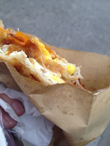 一直去那里吃鸡蛋灌饼的,饼里面灌鸡蛋,外面还真的蛮少吃到的~他们家的鸡蛋灌饼刚刚做好吃起来香香脆脆的,味道非常的好~鸡蛋灌饼还可以加里脊肉、香肠、培根、蟹肉棒、金针菇等等~可以添加的东西很多,一份买下来大约在6块钱左右,吃的相当的好哦!!就是环境一般般,感觉不是很干净,偶尔去吃吃还是蛮好的,外面很少见!…查看更多