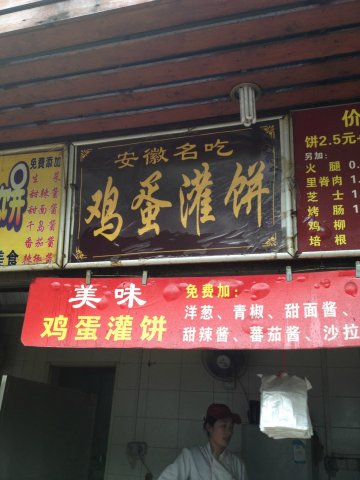 在我们学校边上一家 还不错 生意是非常的好 去的时候经常会看到很同学在那排队买鸡蛋灌饼,还不错 做的非常的好吃 也比较丰富 味道很香 放上有些蔬菜 生菜,培根,香肠,金针菇的 吃着非常的爽口 味道不错 价格经济实惠…查看更多