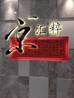 京汇粹——这家店长草很久了,一直都没有时间去光顾下,去过了就爱上了这家店。店开在长宁龙之梦的8楼,周边的交通特别的方便,地铁2、3、4号线中山公园站就能找到了。店面很大,装修的蛮精致的古色古香,最赞的是店员的服务态度很不错,全程满意,上菜还会报菜品这点特别的喜欢。京味很浓的一家店,非常的大气上档次。去的时候人不多,不用等位。环境:装修的风格很有老北京的感觉,店内透明橱窗内就是烤鸭的地方,全程透明挺有意思的。最喜欢的是他们头顶上的灯,个个造型都挺别致的,看着就很漂亮,灯光很柔和不刺眼。餐具:店内的餐具类似于青花瓷的感觉,很精致,很少会有店做的这么的漂亮。质感也很好,拿在手里很舒服。最特别的是筷架,很可爱的鸭子,很有特色。菜品:豆豉鲜椒蛏子——没有想到他们家做出来的是冷菜,味道还是蛮惊艳的,蛏子处理的很干净,没有内脏和腥味。肉质脆脆的很有嚼劲。特制的酱料微辣微麻,越吃越香。豆酱葱爆羊肉——京葱的量很多,显得羊肉有些少。他们家的羊肉味蛮正宗的,肉质不错,没有羊膻味,还蛮好吃的。豆酱和孜然味搭配在一起,很不错。京酱肉丝——最推荐的一道菜,色香味俱佳,肉丝根根分明都很入味,浓油赤酱很适合上海人的口味,搭配他们家的空心馒头,很不错。是我吃到过最好吃的京酱肉丝,没有之一。猫耳朵——他们家的猫耳朵有3种口味,最后选了番茄卤蛋,怎么说呢,菜品端上来颜色很漂亮,猫耳朵很不错,量很多很有嚼劲,就是番茄卤蛋味道偏咸,缺少甜味的口感有点吃不惯。麻酱糖饼——很喜欢的一个点心,麻将咸咸的,搭配糖的甜味,一点都不奇怪,反而显得这个饼更香了,面皮烤的脆脆的,趁热吃特别的香。总的来说,这家店的价格不便宜,但是菜品的质量和味道还是很不错的。他们家的菜品大多都会搭配主食,所以点菜还需慎重。人多的话建议点个烤鸭,一鸭三吃还是很有特色的,就是价格略高。很不错的一家店,值得一去哟。查看更多