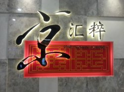在龙之梦发现了这家新开的店,看上去环境很好,于是尝尝。大厅很清雅,灯具造型优美,餐具也很别致,筷子架很可爱。既然叫京汇粹,就点些北京菜。两个人烤鸭就不必吃了,虽然现场烤出来很诱人。老胡同砂锅炖肉丸,68元,看上去很大的一锅,其实容器不深的。肉丸很入味,甜甜的,大白菜和粉丝都很美味,吃了好多。不过有点本帮菜的感觉。宅门浓汤煮大虾,88元,汤汁很鲜美,萝卜丝在其中也美味异常。龙江大拌菜,28元,有点淡淡的芥末味,很清口,上面还有猪肉丝。饮料要了瘦身之选——柚子猕猴桃汁,25元,用料蛮足的。比28元的橙汁更健康。门钉肉饼,4个22元,大概一寸的直径,肉馅不错。加了电子会员卡,打九折,242元。对得起这个环境和味道。查看更多