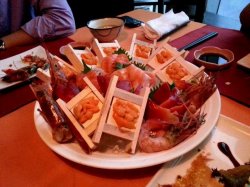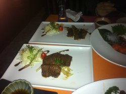 有幸参加客户的答谢会, 到金茂去吃日料,有点小激动,走进门口有条很长的长廊,设计较有特色。里面大堂还是蛮大的,小包房也有不少,环境布置还是不错的。 我较喜欢的日料刺身是三文鱼。切块厚的,入口很肥美,美味;烤牛舌很香嫩,口感很好,天妇罗,外层很香脆,里面的虾肉很鲜美,特别是每道菜的摆盘都很精致,是一家值得一去的日料餐厅。查看更多