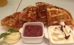 很喜欢这家店的店名,蛮诗情画意的赶脚哦~貌似现在已经关门了,之前和朋友一起去吃的,还蛮满意的说~抹茶红豆脆皮松饼,一份4块松饼,奶香味道蛮浓郁的,外皮有点脆脆的,不是很厚实的那种,等的时间比较长,是现烤的,热的时候蛋香+奶香,还蛮嗲的呢~配的冰激凌球小了点~果酱味道蛮浓郁的,是蓝莓酱吧~甜甜酸酸的,量也蛮大的~查看更多