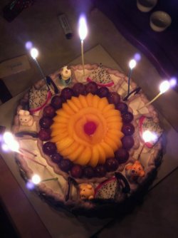 他家这个蛋糕还是蛮好吃的,生日的适合同学送的,巧克力味道的蛋糕,口感还不错,不是很甜,没有那么腻味。里面还夹杂着水果丁和奶油。总体来说还是挺不错的