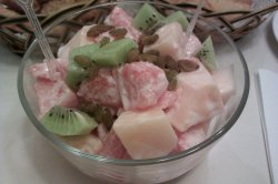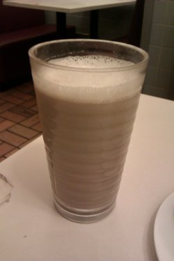 地铁施工挡住了店面,要不是上面的LOGO还能看到,真会以为不营业呢!从名字看会认定是西式快餐,不过一进门看到上书特价的豆浆,炸酱面VS沙拉之类,就会觉得小混乱了,算是中西合璧吧……店里的装修应该也是用了一番心思,不过配上名字还有菜色感觉小怪,长沙发略破些,不过想想知道这家店起码有十年以上了,学生时代到官批就看到过,至今还能存在已属不易!饭点人也不多,也许是因为店面被挡生意冷淡,所以推出了不少特价,一杯大枣黑豆豆浆竟然只要3米,一扎才8米,任意消费加2米换小蔬菜沙拉,加4米换小水果沙拉,他家价位其实并不算高,如此优惠下来就有点比街边茶店还低的印象了……猎奇的团购了一个双人餐,看到价格其实本来没有很多期待,不过等上菜了还是小吃惊了下,起码很推荐那3米特价的大枣黑豆豆浆,热乎乎,豆香枣香,入口不怎么甜,但挺浓的,很不赖!红枣茶如果有人爱,大可以点一杯,然后要2杯热水,稀释喝——一杯的浓度实在让人吃不消,里面还有枣肉和桂圆肉,甜的倒牙……意大利面量不算小,面煮的火候尚可,酱汁一般,番茄、洋葱、肉末、黑胡椒、芝士味道和奶油味道基本无,倒也能接受,不油腻~~炸物里面的芒果布丁很推荐,长条形炸的外酥里面的软心能闻到芒果香,入口没有过甜过油,芒果味不明显,不过内部有白色脆脆的山药屑,总体挺顺口;炸鸡块就可以忽略了,基本上就是面块,应该是速冻食品加工的;黑胡椒牛排和猪排,从上菜的美观上基本是零分……也不能算是排了,就是拍散的厚里脊片……猪排腌的偏咸,黑胡椒酱汁非常咸辣,牛排则口感有点柴,总体是咸辣重口味……水果沙拉倒是量挺足,西瓜、哈密瓜(很甜)、香蕉(挺新鲜)、奇异果(半个),葡萄干也不少,唯一瑕疵的是西瓜都没有去籽,于是当葡萄干和西瓜子都淹没在碗底沙拉酱中的时候……就需要辨别了!个人觉得这里路过喝个热豆浆吃个小食,当下午茶应该还不错~~随便吃吃吧!服务倒是挺热情~…查看更多