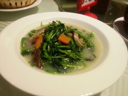 何贤记做的是粤菜,味道不是那么清淡,挺符合北方人的口味的。餐厅环境挺不错的,也很宽敞,价格适中。朋友送的优惠劵,挺不错的,还算实惠。上汤西洋菜味道清新,很喜欢西洋菜,菜很嫩,吃着很爽口,汤很好喝,咸淡调的正好。烧腊看着油油的,吃着很劲道,不过吃着有些腻。查看更多