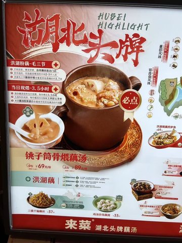 來菜湖北頭牌藕湯 (大悅城) (深圳) 網址: https://s.openrice.com/KtbS0W0pJMQ00 地址: 深圳寶安區寶安中心區創業二路與前進一路交匯處大悅城L3層11號鋪 電話: +86 17302635726