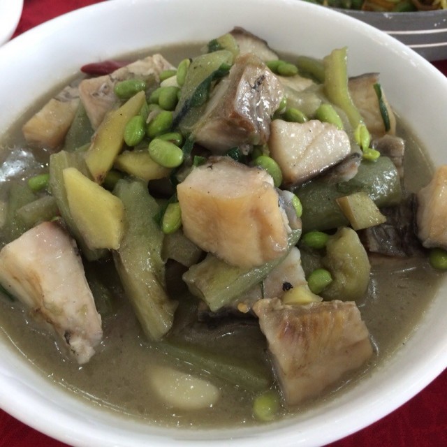 很稀奇,这里的菜饭竟然不是用菜烧得,而是用杠豆烧的,奇怪伐。本来以为这里的菜饭肯定又香又好吃,毕竟菜很新鲜,咸肉之类的又是自家腌的,再加上灶头的大锅焖出来的锅巴,肯定很赞,没想到,竟然使用杠豆做的,偷工减料不成?而且那个锅巴也僵硬的要死,嚼都嚼不动,唉。失望。…查看更多