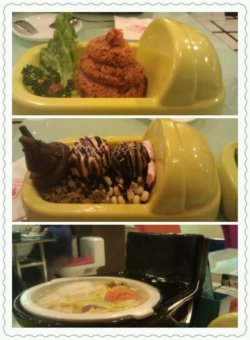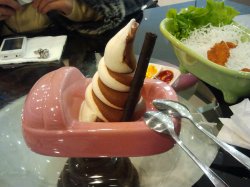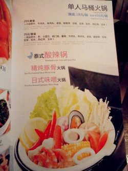 团购的价值45元火锅5选1,有韩式大酱牛肉火锅、精炖豚骨牛肉火锅、韩式泡菜牛肉火锅、日式味噌牛肉火锅、泰式酸辣汤牛肉火锅5种可选~我选了精炖豚骨牛肉火锅,火锅是装在一个马桶状的容器中端出来的,仔细研究了一下内部应该是有加热装置的,因为吃的过程火锅一直在冒泡,温度丝毫没减少… 一份火锅量还挺大的,有鸡肉,猪肉丸,虾丸,玉米,金针菇,青菜,香菇,粉丝,还有一碗米饭,一个人吃也挺饱的~ 但是味道实在是很淡很淡,吃起来寡淡无味… 邻桌的人点的是冰激凌,巧克力味道的棕黑色的装在蹲坑马桶里,那造型,那颜色,实在是太像便便了……下次再去试试……查看更多
