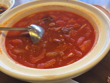 这家俏江南的地址是华远路7号7-1号(中国银行总部西侧),他家的牛腩汤是我最喜欢的,感觉里面的西红柿酸甜口味,汤汁是那种酸汤,特别解油腻解辣还开胃,里面的牛肉块真大,还挺多的,量真是够大的,1我觉得4个人才能吃完这个汤。
