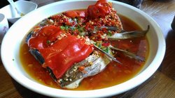 开门红39元,就是剁椒鱼头,鱼头分量挺足的,很大一个盘子上来,川味的辣,上面铺着红色辣椒,看起来蛮有食欲的。鱼头的调味也不错,微辣,鲜香,鱼头新鲜也很嫩。湘妃煮干丝19元,干丝的口感很瓤,不是切出来的干丝,煮干丝的汤底挺鲜美的,里面有咸肉和虾。秘制虾45元,口味类似外婆家的蒜蓉粉丝虾,底下垫底的是香葱和金针菇,用一个野炊炉直接上桌制作的,几分钟就好了,但是油很大。虾子也是进过冰箱的。