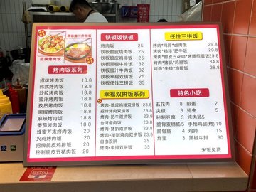 招牌烤肉饭 / 脆皮鸡烤肉饭 / 黑椒牛排饭 / 麻辣鹅胗 / 猪耳朵拼盘饭