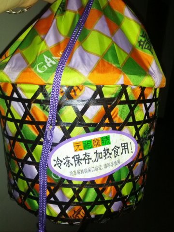 说道这个,就得说道端午节公司发的粽子了,呵呵。今年端午公司发的是一笼元祖龙粽。用一个篓子装着的,看外观很有新意。打开里面附送了一个小香囊,装的是艾草,看来元祖公司还是很有心的。粽子个挺大,蒸热了很香,里面有瑶柱、海鲜、花生、板栗等等,味道非常可口,有喜欢的朋友可以买来试试。