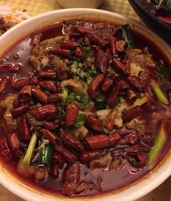要吃辣,上川菜,真的没错啊,冬天了感觉没什么胃口,就想吃点川菜提提胃口。环境好不错,他家的旗舰店,感觉挺好的,泉水牛蛙很不错,88元一份,上面一层麻麻辣辣的油,肉质是相当的嫩,麻辣味到位,都渗进牛蛙肉里面,毛血旺口味太重,有点偏咸了,没敢多吃,底下的豆芽很多,肉太少了,性价比还可以,人均80左右,很地道的四川味。查看更多