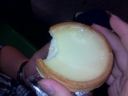 看到蛋挞还剩下最后4,5个,我心里就开始发痒了!果断的拿出爸爸给我的他们家的卡,买了两个,其实如果用现金晚上可以打8折,如果用了卡还是原价,两个蛋挞8元钱,不会觉得贵,现在蛋挞就是这个价钱呢!喜欢那种冰冰的蛋挞,里面的蛋挞心冰凉凉却滑嫩嫩的,还有外面的酥皮,至少不会吃的掉渣!而且也比外面的蛋挞大一圈!奶味香浓,非常好吃!查看更多