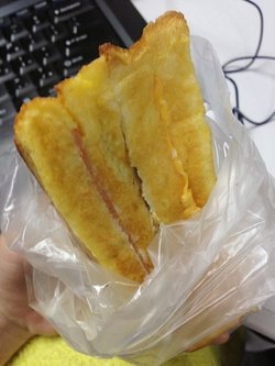 虽然这个土司看上去有点油腻,不过吃起来的口感倒还不错。里面夹的馅料还是很丰富的!吃起来的味道略微带点甜,平时不怎么喜欢吃甜面包的我,对这款面包倒是觉得还不错的!里面的配料和整个面包吃起来的味道搭配得很好~查看更多