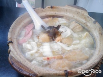 中午出吃的中饭,早上有路过那里,看到门口的广告牌上有吃沙锅,正好天冷,就决定去这家试试,点了蛋饼三鲜砂锅,等一十多分钟,端上来很烫,沙锅的外面套了个藤篮子用来隔热,汤里面有黄芽菜、鱼丸、鱼竹轮、肉皮、肉圆、油面筋、津津肠、蛋皮。除了熏鱼有点腥感觉味道不新鲜,其他都还可以,饭是送的,一碟子,不过基本没吃几口,一个人吃下一锅子汤,已经饱了。总共14元,还算可以吧~~~