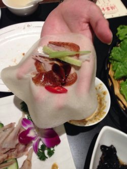 在北京吃烤鸭,一定要去过全聚德烤鸭,这里的鸭子个头大,烤的炉火纯青,每次吃完都特别的解馋。在方庄家乐福店的对面,很显眼的位置。大厅很大,装修的也很朴实,感觉很亲民。鸭子都是现烤现吃的,焦香的外皮、嫩嫩的鸭肉、好吃的甜面酱,无不体现了老字号的独特之处。片烤鸭的师傅也是手艺超高,刚刚出炉的鸭子在他们手下片的整整齐齐,每一片都大小匀称,鸭皮鸭肉都照顾到,卷在荷叶饼里特别的合适。查看更多