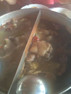 这家店在朝阳区西大望路工业大学对面龙福宫酒店一层饭馆装修的一般,门口贴的都是猪八戒,很显眼环境还挺怀旧的,桌上放着绿色的搪瓷杯点的鸳鸯蹄花锅,猪蹄软烂可口,胶质很多,份量也足锅底的东西也很多,煮久了配菜会吸猪蹄汤汁,很有味道和营养查看更多