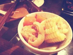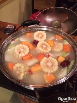 去南锣鼓巷,点了招牌木瓜猪手火锅。上来后,还真被吓了一跳!此锅可不是一个普通火锅锅底,上面有冬瓜玉米木瓜,下面是猪蹄,配上浓浓的高汤,满满一锅!两个人的话都不用点别的菜差不多就能吃饱,性价比还是很高滴~~~汤比较鲜美,不会有太多乱七八糟调料的感觉,建议刚开始的时候喝一两碗。锅子刚上来的时候还以为猪手就几块,一扒拉,敢情全在锅底下呢,问了下店主,猪手足足有两斤半!猪手应该已经是炖煮很久之后的了,开锅就可以吃,都被切成小块,比较容易入口。大概是我平日就不很哈火锅,即使蘸了小料,或许是视觉影响了味觉,觉得猪手还是稍显清淡,不够入味,同行的尝了一小块后就全部让给了本姑娘%〉_〈%其实,我更喜欢里面吸收了高汤精华的玉米和冬瓜啊~~~浪费不是好孩子,以至于这一大锅主料基本被我包圆儿了,好在这种火锅吃完不会上火。查看更多