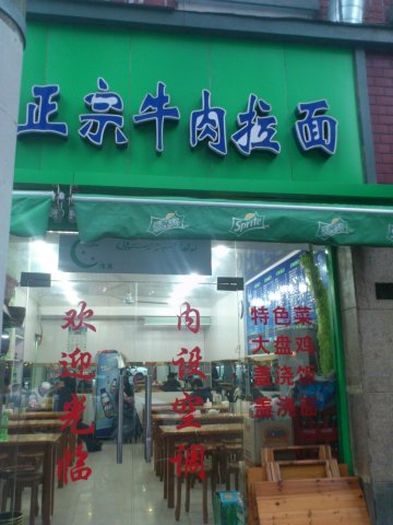 太不搭了好吗?美好美丽美的化身的安福路上居然出现了牛肉拉面,这让我情何以堪.为了证明它有什么特别,办完事以后,我特地去尝了尝味道.头上顶着"正宗"两个字,店铺比一般外面的干净很多,也亮堂很多. 我要了碗牛肉拉面.师傅娴熟地拉好面,面拉得很均匀,咬起来很有嚼劲,感觉功夫还挺到家.汤很热很有牛肉味.价格也不算很贵十几块而已.相比较周围其他的天价小资店,这家的性价比已经毋庸置疑了.给我端面的是个包着头巾的大妈,笑得很好看.