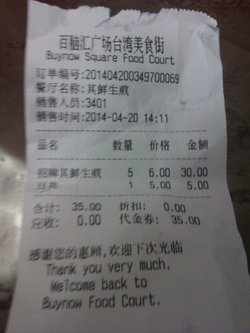 他家是在徐家汇漕溪北路百脑汇2期的5楼5楼吃的东西很多,有点像大食代大家可以根据自己的喜好选择吃什么那天去的时候因为中午已经吃过午饭了就想当下午茶来吃,也就尝尝鲜【生煎】6元4只卖相不太灵光,这还是新鲜出炉的,跟小杨生煎相比差太多了个头也不大,只能说是一般般吧【油豆腐粉丝汤】4元感觉汤里放了很多味精鲜是鲜,可就是喝上去明显的是合成的鲜味【骨汤小馄饨】5元肉真的好小一点点……感觉吃上去都是皮~~不过这个汤头真的还不错特别是跟油豆腐粉丝汤比起来,一尝就明显不一样的鲜味查看更多