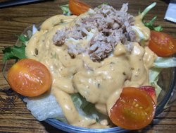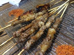 咳咳咳,姐姐突然想吃烧烤的节奏,于是乎果断去了家门口的这家。5点多到店,点好菜就已经是很火爆的状态了,等吃完饭出来,门口已经若干排队的食客了,艾玛,果然是夏天快来了。霸道的选择四人桌,因为拿的大包小包的实在是太多了啊啊啊•••桌上有一本菜单,扭头在备用菜单架子上拿了一本。一会儿服务员就过来了,质问我们是不是拿了隔壁桌的菜单,一桌只给一本的。我去•••我解释了我是从后面的架子上又取了一本,她这才悻悻离去。点餐后只有沙拉和砂锅上来了,等串时间半小时啊半小时•••金枪鱼蔬菜沙拉,18米。说是金枪鱼沙拉,实际米有多少鱼,不过好在菜菜的量够大,看起来还是蛮实惠的。千岛酱拌菜叶,就是这样而已。水分太大了,基本就是洗完菜直接放盆子里的节奏啊,盆地华丽丽的都是水。只吃了上面一层•••砂锅豆腐,8米。价格很实惠,玉兰片丝、豆腐、鸡蛋、粉丝,量也是蛮大的。醋味和黑胡椒味道都很浓郁,醋椒豆腐果然是很醋椒啊。烤串思密达终于陆续上桌,挨个点评~蜜汁排骨,5米一串。叉烧肉的感觉,外面一层是甜味的酱料,排骨肉经过腌渍,叉烧排骨的化身,入口很好吃,后面有点腻口。烤肉筋,4米一串。不吃肥肉党伤不起,果然还是不适合吃介种类型。即便是肥瘦相间,还是觉得有点腻。不过肉质算嫩,口感还不错。烤羊肉串,3米一串。鸡心,2米一串。羊肉串非常小,不推荐,冒米有吃。鸡心没有腌渍,不入味,吃了一个就放弃了。烤鸡胗2米一串,无爱。烤鱿鱼头,3米。光是看外形就很可怕了,小伙伴的菜。烤玉米,3米一串。这个是冒的菜咩,煮过的粘玉米经过烤制,虽然没有太大调味,还是很香甜的,火候不错。五哥烤翅,蒜香烤翅,6米一串。五哥比较推荐,有麻椒的香味和淡淡的甜味,吃起来很香嫩,肉质也不错,就是鸡皮稍有点肥。蒜香的重口味一些,食蒜爱好者的最爱,果断不是冒的菜。两人87米,还算实惠的价格。菜品种类很多样化,意面蘑菇汤炒菜烤串甜品鸡尾酒应有尽有,不过服务有待加强。…查看更多