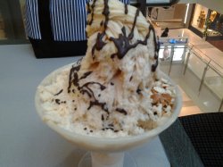 最早了解绵绵冰就是这家咯~同事带去吃的~巧克力绵绵冰,20元一份,本来以为是刨冰呢,口感其实近似是冰激凌的那种,只是造型上面像是冰霜而已,巧克力的味道蛮浓郁,也不是很甜,蛮好吃的~手工冰激凌20元左右一个,外层的巧克力脆皮很厚实,冰激凌味道也有很多选择,香草原味的很赞,奶味儿很足,推荐哦~查看更多