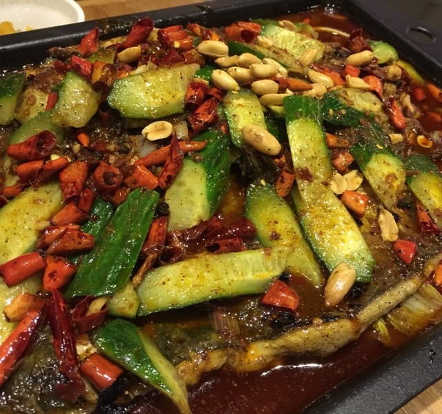 环境挺不错的,应该装修的时间不长,很新。服务员的态度都很亲切,满脸微笑,吃饭的过程中有一位阿姨看见水杯快空了就给我们加水,这点小细节店家都做的特别好。烤鱼点的是酸菜味的,因为最近比较上火,虽然很想吃辣的,但是为了身体先拿酸菜解解馋吧~鱼肉的分量很足,肉很进味,腌制的过程应该是时间不短的,鱼肉很肥美,配上酸菜的酸味儿一点都不会腻,微微的有些辣味,很好吃。蒜泥白肉真挺不错的,很大片的白肉配着黄瓜片,表面铺有满满的蒜泥,真是超级适合我的口味啊,蒜香和白肉在一起真是最好的搭配。牛蛙我们在服务员的推荐下也要了一份,因为是新出的,就想先尝尝,酱香味是主打,正好也不能吃辣,就果断选择了这个,上来真是满满一大盆的牛蛙,特别实在,酱香味的也很不错,下次试试麻辣的。