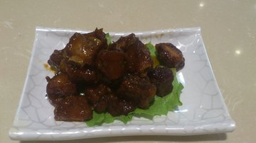 冰火名家的烤鱼一向是很喜欢的,虽然环境一般了点,但感觉这里的烤鱼味道不错,这次来的时候人有点多,等了好久才上菜。豆豉烤鱼,一条鱼3斤多,满满的一个大托盘,里面的配菜很好吃,笋脆脆的,也很入味。凉拌腐竹很劲道,在主菜没来之前,随便吃吃很爽口。