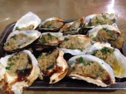 没想到和老家的烧烤店名一样呢,味道还更胜一筹的说!环境卫生均可,生意也跟老家的一样比较火爆哦,特别是过年过节的,伙计们要忙晕的感觉!除了点些常规的爱吃的藕片、土豆片、凤爪外,我们点了超级多的铁板生蚝,只想一次吃个够。味道真是无以比拟,直接上图,鲜嫩欲滴的生蚝肉新鲜吧?上面一层浓郁鲜香的蒜汁,盖过了其原有的腥味,带上点点大蒜的原始辣味,可谓新鲜鲜甜呀!赞!下次来继续以生蚝为主!查看更多