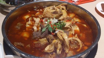 母亲节又带妈妈去了一次,因为妈妈一直都没吃过,之前一直不能吃辣,所以现在有机会必须满足一下真是妈妈要吃我才来的,吃的不怎么爽第一,我不喜欢等位,不管吃什么,多想吃,等位我宁愿不吃,这是我第一次为陪妈妈吃等位,等了将近半个小时,而且叫号一点也不太,怎么说,基本是谁着急,谁在那附近谁先进去,也不管到没到号,反正也有情可原吧,谁整一天也筋疲力尽等位的过程中竟然还免费观看了一场真人格斗,大堂经理和顾客打起来了,哈哈,第一次看,差点崩我一身血,所以我当时就挺不乐意去了,但是看妈妈还是比较想吃,就继续等吧,现在的人太浮躁,麻将这点小事也能动手,真是吃饱撑的后来终于进去了,负责我那个服务的小伙还不错,验证什么的挺麻利,团购和店家出的套餐竟然一个价格,我问区别,原来团购的是省了茶位费,好吧,省几块是几块不知道是人多还是怎样,对于这次的就餐基本不满意,第一,调料区东西不全,而且之前免费的一些东西这次也没见到,第二,锅底太糊弄了,上来竟然多半锅是汤,肉根本看不到几块,和第一次吃的差太多,我大概目测了一下,和后边回忆,好的肉块我能说都不足8块吗?反正我就只吃了一小块,然后筋也不烂,根本咬不动,也就板筋还能吃,里边还有个不知道什么的筋,好大好大一块,你们根本都不切的吗?这让人怎么吃我就是不爱找事的人,也不想破坏妈妈吃饭的心情,不然这个我只定不买账,太胡龙人了,所以不会z再去了拼盘里东西我也没对,反正就随便吃吃就好,这次的粉条有进步,比上次的强,豆皮一直是我的最爱,就是青菜没有爱吃的最不爽的是吃完一身味,很不爽,而且这味道久散不去,害的我刚穿一天的衣服从里到外全洗一遍…查看更多
