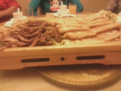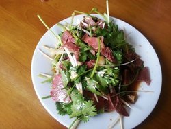 晚上友人请客,跟着老公就过去了,地方还算好找,不过停车超级费劲,这家店不大,但是人可真不少啊。因为是别人请客,所以餐单都没看到,吃就好了。先上的是两个小菜,开胃的。白菜真酸啊。菜花没有什么味,我是吃肉的,直接忽略这两素菜。大菜上来了,驴紫盖。一半驴肉,另一半是火烧,火烧相当脆,驴肉有点肥了,不过很软烂,沾上酱加在火烧里,别有一番风味,不错。不亏是招牌。竹签穿好的驴肉串,沾着辣椒面吃,辣椒面真够辣啊,驴肉本身滋味不足。茶香虾,虾不错,超大个,开背了,方便剥皮。底下垫的是茶叶。不过茶叶味欠佳。驴肉驴排驴尾锅,看着满满的,其实下面都是冬瓜,驴排不错,很入味,驴肉是带皮的,很有嚼头哦。腰花,也是驴的哦,相对猪腰子来说,够硬啊。铁板驴肉,味道微甜,肉块很大很实在。总体感觉不错,适合家庭聚餐,可以尝试品种多一些。查看更多