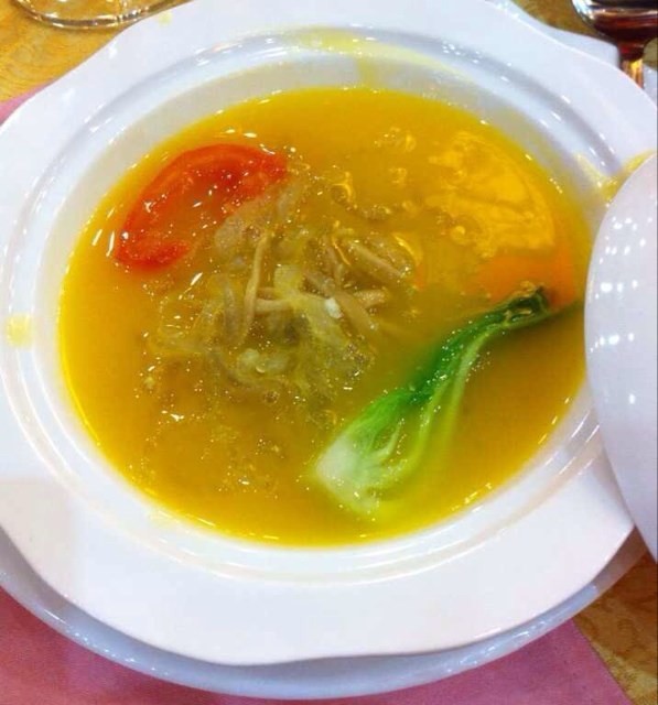 【菜式】咖啡栗子---好苦啊 没有咖啡の味道 味道没有进去 囧~~~~~~··糯米糖藕---这个不错 甜甜糯懦の 摆盘也蛮好看 推荐一下 噢哈哈~~~~招牌水晶鸡---鸡肉很嫩 没有蘸料 一样很鲜美竹网京葱烧牛蛙---牛蛙太mini了也 应该是蛙仔吧 额~~~~~~~~~··星洲海鲜油条---油条外面包裹着一层奶油 油条当中夹着肉 口味不错 很糯的 怨念の是 我吃了3根 以至于 后来见到我妈咪 然后发生了“淡糕门事件” 5555555~~~~~~···清蒸多宝鱼---鱼肉不错 这道菜最抢手了 因为 最好吃港式干烧伊面---面很Q 弹性十足 不过 实在是次不下了 我们这里战斗力比较弱 大半盆没次完 哈哈缤纷果盘---缤纷在哪里类 就西瓜和哈密瓜 没有了 未发现缤纷在哪里 摆盘也很SO o(╯□╰)o饭店看上去还是生意不错の 就这样...................