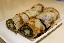 之前在日月光吃过千秋膳房,印象还算是不错的,关键觉得价格实惠,两个人吃了100都不到,就已经蛮饱了。这次在百脑汇的台北东区看到有家小吃店,也是旗下的,貌似楼上有千秋膳房,所以这里供应小吃比较多,而且地方比较小,适合简餐或者打包。他们家主打的大饼卷牛肉肯定要吃的,不过感觉没以前好吃了,饼皮稍微有点干,里面的牛肉倒是还是那么实在,喜欢咬上一大口,这样很爽。还有其他人推荐的红烧牛肉面,很普通,还没外面那种小店的好吃。反正一般般啦,随便吃吃的。…查看更多