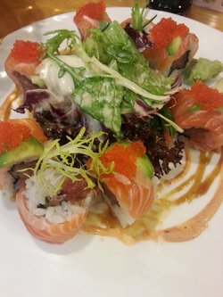 在情人節當幾日在點評秒到2.14的50元代金券,秒了2張~秒到後,就電聯商家,和服務生MM確認可以用2張,也預約好了~情人節當天去了千艾创意寿司,服務生MM說規則修改了~上網一查,還真真是未曾想到,事隔一日之後,商家在頁面修改了規則~每桌限用一張~罷了罷了~這一切解釋權都歸商家所有~也不想弄僵,畢竟吃飯是件快樂的事情!況且服務生也是打工也不容易~體諒人,寬容也是一種美德!本來還想點了刺身拼盤什麼噠~既然如此,即來之則安之了~翻閱了MENU~點了壽司什錦飯和火炙三文魚壽司~雖然已經過了午市的高峰就餐時間,已經臨近2點,但小火車上的生意仍舊是很火爆,幾乎9成的上座率,說明了其的人氣~畢竟人均100左右的壽司小店,還是很實惠的!小火車的裝潢很有特色,雖然空間狹長,但打理的還是蠻乾淨的~餐廳號稱是有wifi的,可惜連不上!服務生MM有2,3位,很是忙碌~態度還行~只是洛一入座,MENU沒有隨即奉上,還需要顧客提醒,服務生才送上,可想而知,忙的程度了!火炙三文魚壽司,19元/2個,米飯捏的倒是緊實的,半生半熟之間的三文魚,用火槍小小地噴過之後,去除些許的油脂,口感肥美,入口即化的火炙三文魚~滋味很不錯~至於壽司什錦飯就比較一般了,魚生的部位很一般,而且切片的紋路很比較雜亂無章,只有三款魚生,分別是三文魚,金槍魚及鯛魚,魚生的品質也略為普通,畢竟才38元,也就如此啦~能理解~按這樣的水準,三星:好,絕對足矣了~可惜點了並不是他們家的特色sushi~並無多大的驚喜,隨便切切,當工作餐倒是蠻實惠的~可付cash亦或是刷卡均可~…查看更多